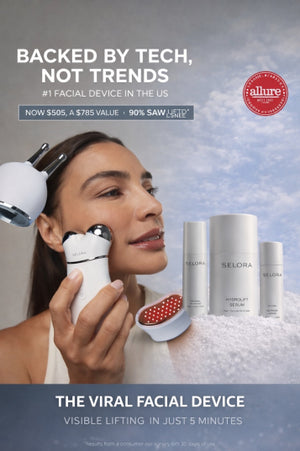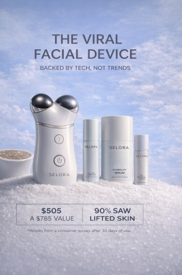 “With just a few minutes a day, she gently glides Selora over her face. Over time, her skin looks more lifted, toned, and refreshed.”